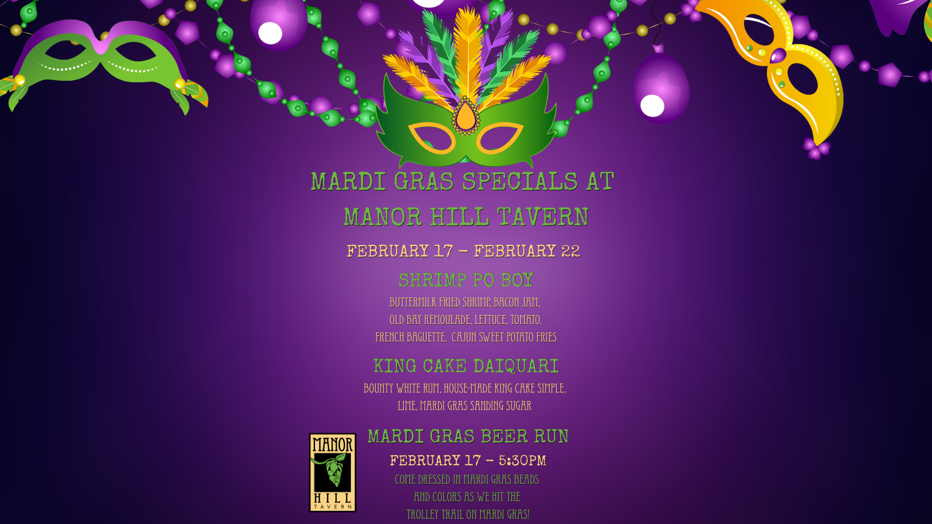 Mardi Gras at Manor Hill Tavern